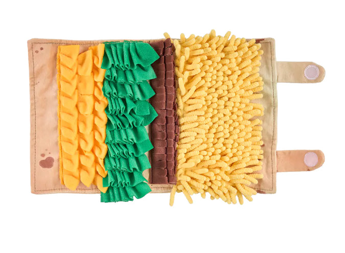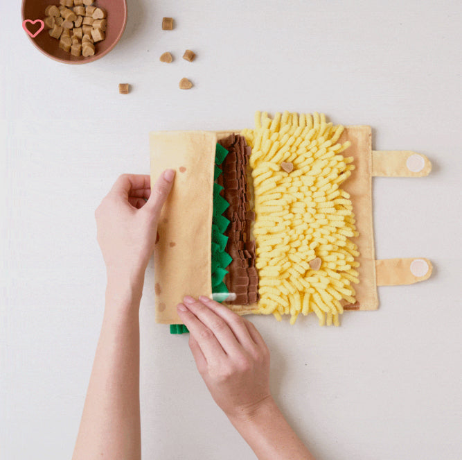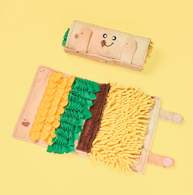 It’s Snufflerz Roll time! Dig into fun with interactive Snufflerz Roll roll-up style snuffle mats from ZippyPaws. Designed to keep your dog busy, stimulate their brain, and tap into their natural foraging instincts, Snufflerz Rolls are a great treat-based way to entertain your pet. Also promotes slow eating. Simply hide their favorite treats inside and sit back and watch them dig in.